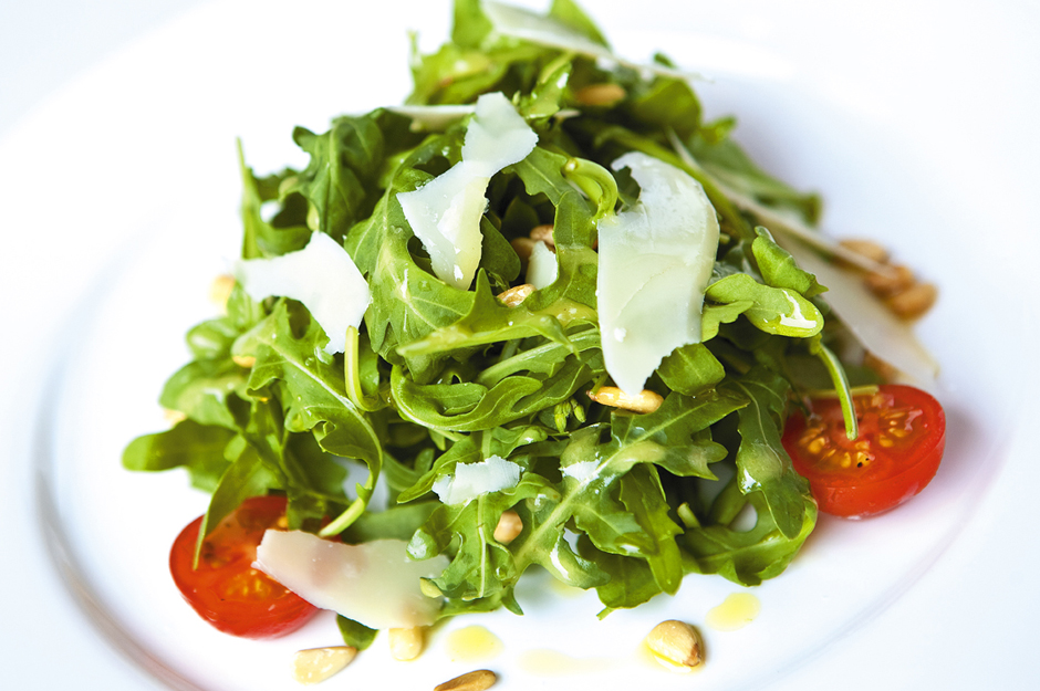 Ingredients: - 5 small tomatoes, cut into halves - 3 – 4 Rocca, bunch - 200g parmesan, cut into slices or grated( to taste) - 2 tbs. balsamic vinegar - 1 tsp. salt - ¼ cup ALKHAIR olive oil - Garnish with...